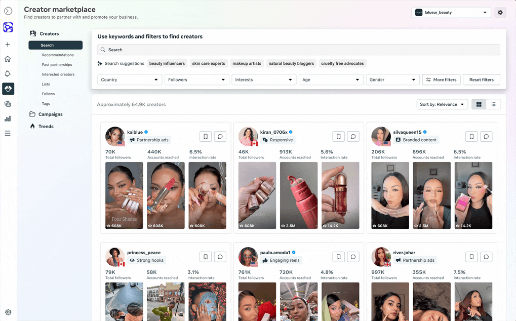 - Facilitar la colaboración con creadores en Facebook e Instagram: El acceso ampliado a nuestras API de descubrimiento de creadores simplifica el proceso para que las empresas y agencias encuentren creadores.