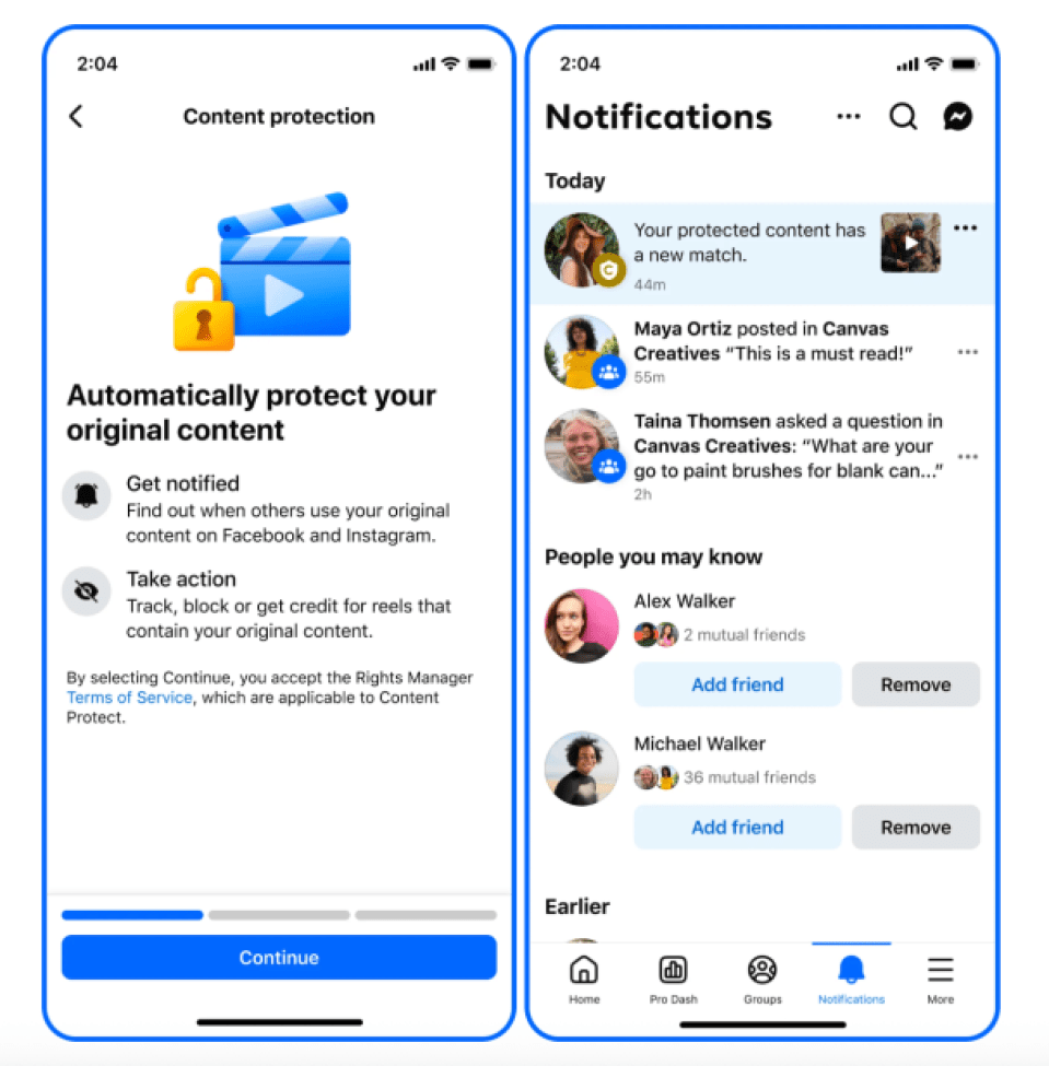 Hoy presentamos Facebook Content Protection, una nueva herramienta disponible dentro de la app móvil de Facebook que ayudará a los creadores a proteger automáticamente sus Reels originales, recibir alertas cuando se detecten coincidencias de esos Reels en Facebook o Instagram y tomar medidas si su trabajo se utiliza sin permiso.