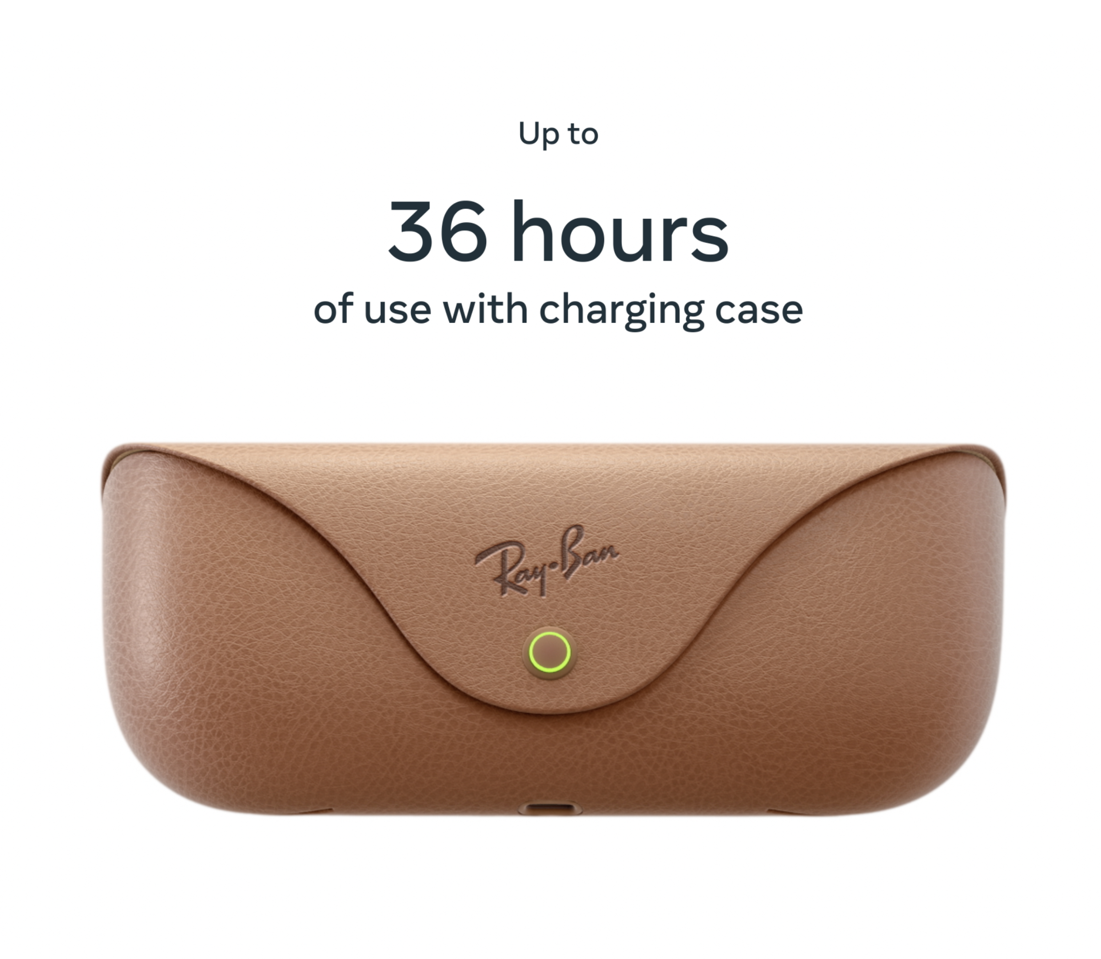 Power up: Ray-Ban Meta smart glasses are powered by the all-new Qualcomm Snapdragon AR1 Gen1 Platform, which enables higher quality photo and video processing and even faster compute. And the glasses come with a redesigned and sleek charging case, which holds up to eight additional charges (for a total of 36 hours of use) while being slimmer and even smaller.