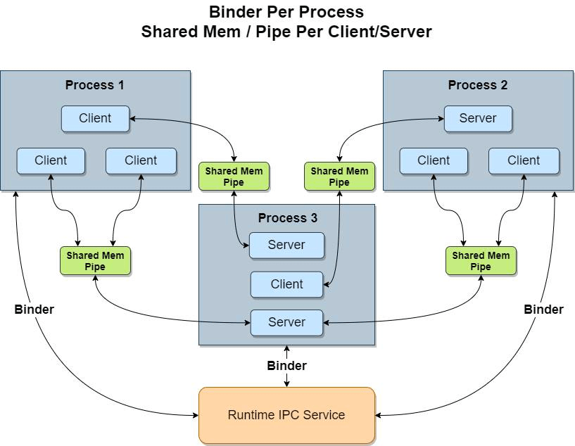 - This process is mediated by the native runtimeipcbroker process, which performs permissions checks and other hand-off responsibilities so that the client and server can communicate directly.