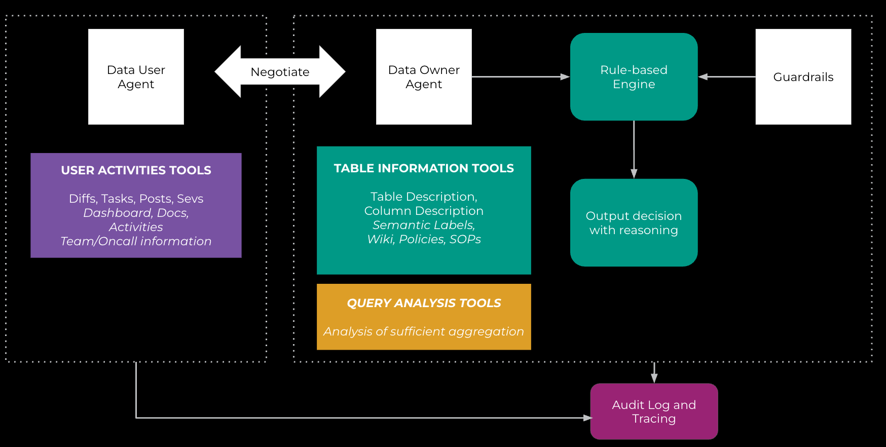 - We detail how we’re developing agents that help users making data access requests to get to the data they need, and that help data owners process requests and maintain security.