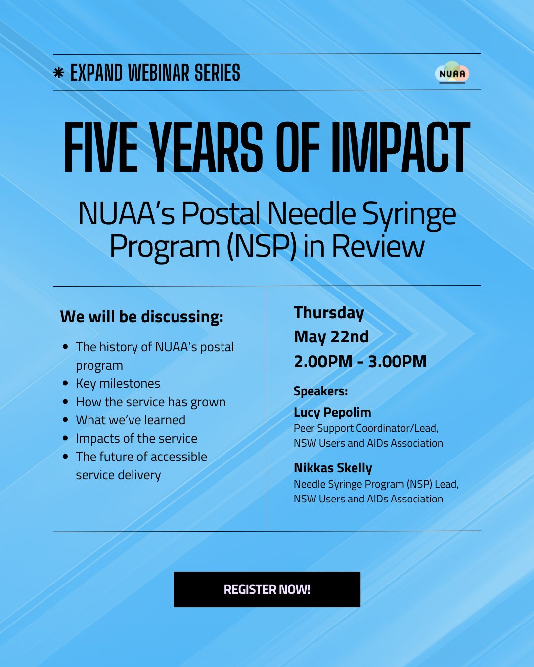 NUAA is a peer-based drug user organisation. NUAA strives to improve our advocacy for, and services supporting, the diversity of people impacted by stigma and discrimination caused by the criminalisation of drug use across NSW through working with a broad range of stakeholders and partners to support system change.