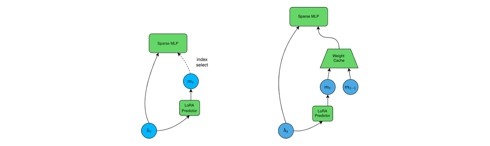 Figure 5: Left diagram shows a naive sparse mlp implementation, with full index select operation