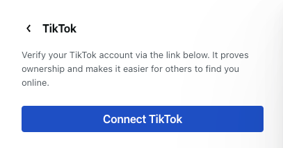 Once a service has been selected you will need to verify it externally by clicking the connect button. For example, here is TikTok: